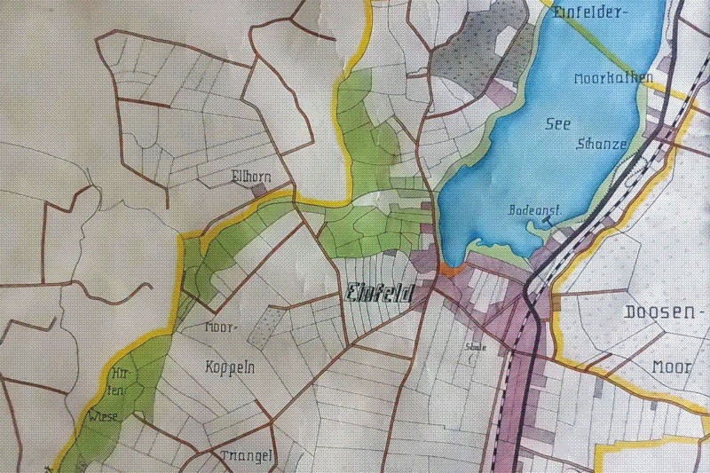 Und … auf jeden Fall konnte ein Traktor samt Anhänger seinen Platz zwischen den neuen Wohngebäuden finden. Das Ackerland wurde zwar verpachtet, aber ein Teil des Bondengehölzes sollte weiterhin in Eigenregie gehegt und gepflegt werden. Beim Frühjahrsputz der Feldmark durch die hiesigen Landwirte kam und kommen Traktor und Anhänger stets zum Einsatz. Während im Jahr 2022 noch die Höfe von Nohrden, Schröder und Wulf am Rande des Stadtteils existieren, sind andere wie z. B. Hof Schweede und Hof Busdorf ganz verschwunden. Gelegentlich erinnern die Umrisse von neuen Gebäuden bzw. Gebäudeteilen an einen der Bauernhöfe oder auch an die alten landwirtschaftlichen Silospeicher. Es sind kleine Details, die an die vergangene Geschichte der Landwirtschaft im Dorfe Einfeld erinnern.