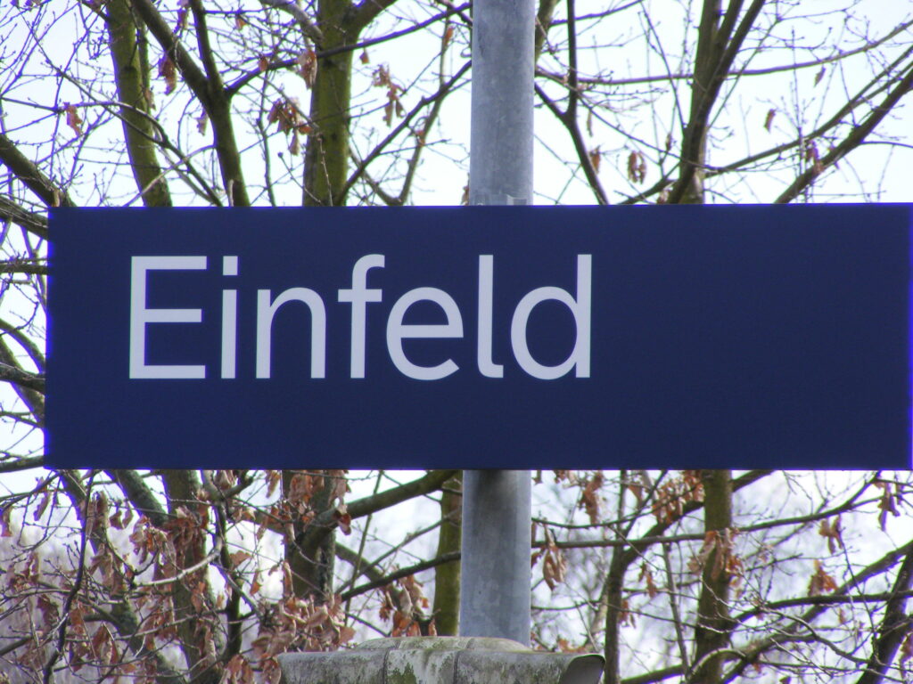 Heute hält in Einfeld nur die Regionalbahn. Bis Anfang April 2009 war es die Nord-Ostsee-Bahn, kurz N-O-B, seit 04.04.2009 die Deutsche Bahn. Um in Richtung Kiel zu fahren ist es ausreichend. Dagegen ist ein Fahrt in Richtung Hamburg immer mit einem Umsteigen auf dem Hauptbahnhof in Neumünster verbunden. Täglich durchfahren aber Personen- und Güterzüge den Bahnhof von Einfeld, sodaß zeitweise mit längeren Wartezeiten an den Schranken zu rechnen ist. Mit der Elektrifizierung der Strecke konnten auch ICE-Verbindungen zwischen Hamburg und Kiel eingerichten werden, wobei diese dampflosen Züge nur durchzischen.