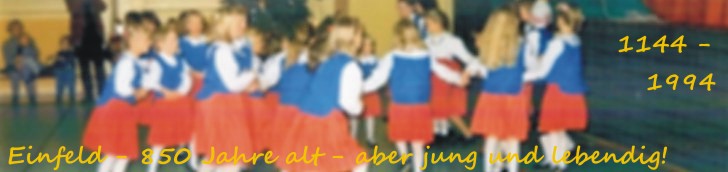 Im Jahre 1994 besteht laut erster urkundlicher Erwähnung die ehemals selbständige Gemeinde und – nach der 1970 erfolgten Eingemeindung in die kreisfreie Stadt Neumünster – der jetzige Stadtteil Einfeld 850 Jahre. Der innerhalb des „Dorfes“ geprägte Gemeinsinn ist auch nach der verwaltungsmäßigen Zuordnung zur Stadt Neumünster erhalten geblieben und hat sich im Laufe der Jahre noch gefestigt und vertieft. Sichtbarer Ausdruck dieser gestärkter Gemeinschaft der Bürgerinnen und Bürger Einfelds sind die vom stets regen Orts- beziehungsweise Stadtteilbeirat bei der Realisierung öffentlicher Aufgaben und Maßnahmen zum Wohle des Stadtteiles erzielten Ergebnisse. Auch die regelmäßige Durchführung der beliebten und immer gut besuchten Einfelder Strandfeste dokumentiert den lebendigen Gemeinschafts- und Bürgerschaftssinn, der hoffentlich bewahrt bleibt, als ein gutes und festes Fundament, auf dem die Zukunft unserer Stadt ruht.Dieses Jubiläum soll als Stadtteilfest unter Einbindung möglichst aller Vereine, Verbände und sonstigen Initiativen gefeiert werden. Um allen Mitwirkenden ausreichend Gelegenheit zur Darstellung zu geben, werden die geplanten einzelnen Aktivitäten über den gesamten Sommer verteilt stattfinden. Dem Festausschuß und den beteiligten Vereinen und Verbänden aus dem Stadtteil danken wir für die mühevolle Vorbereitung der zahlreichen Programmpunkte. Allen Einfeldern wünschen wir für die im Rahmen dieses Jubiläumsjahres vorgesehenen Veranstaltungen im Namen der Ratsversammlung und des Magistrats der Stadt Neumünster viel Freude und Vergnügen und hoffen auf einen guten Verlauf der 850-Jahr-Feier im Stadtteil Einfeld