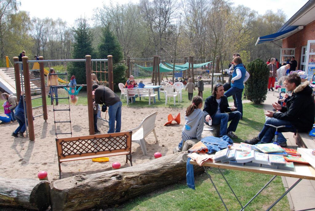 Die Kneipp-Kita ist eine elterninitiativ geführte Kindertageseinrichtung am wunderschönen Dosenmoor. In Anlehnung an die naturbelassene Umgebung fokussiert sich auch die Konzeption auf natur- und gesundheitspädagogische Inhalte, die auch im ganzheitlichen Gesundheitskonzept nach Kneipp verankert sind. In einer Krippengruppe (1 – 3 Jahre) und zwei Elementargruppen (3 – 6 Jahre) werden Kinder in der Zeit von 07:00 – 16:00 Uhr betreut und individuell gefördert. Es gibt keine festen Schließzeiten im Sommer, so dass Eltern ihre Urlaubszeiten bei uns flexibel planen können. Pädagogische Fachkompetenz, Engagement und umfangreiche Betreuungszeiten – dafür steht die Kneipp Kindertagesstätte – Villa Kunterbunt. Ein wichtiger Grundsatz besteht in der kindgerechten Kombination von intellektuellen Anforderungen mit Bewegung, freiem Spiel und Körpererfahrung. Die Kita bietet entsprechend viel Raum für Bewegung, viele Spielmöglichkeiten, eine schönes Aussengelände sowie verschiedene Möglichkeiten, kreativ zu werden (… www.villakunterbunt-nms.de/startseite)